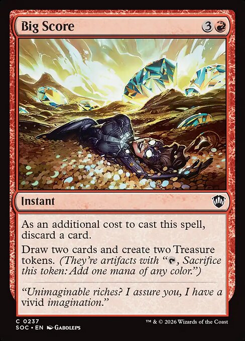 Draw two cards and create two Treasure tokens. (They're artifacts with "